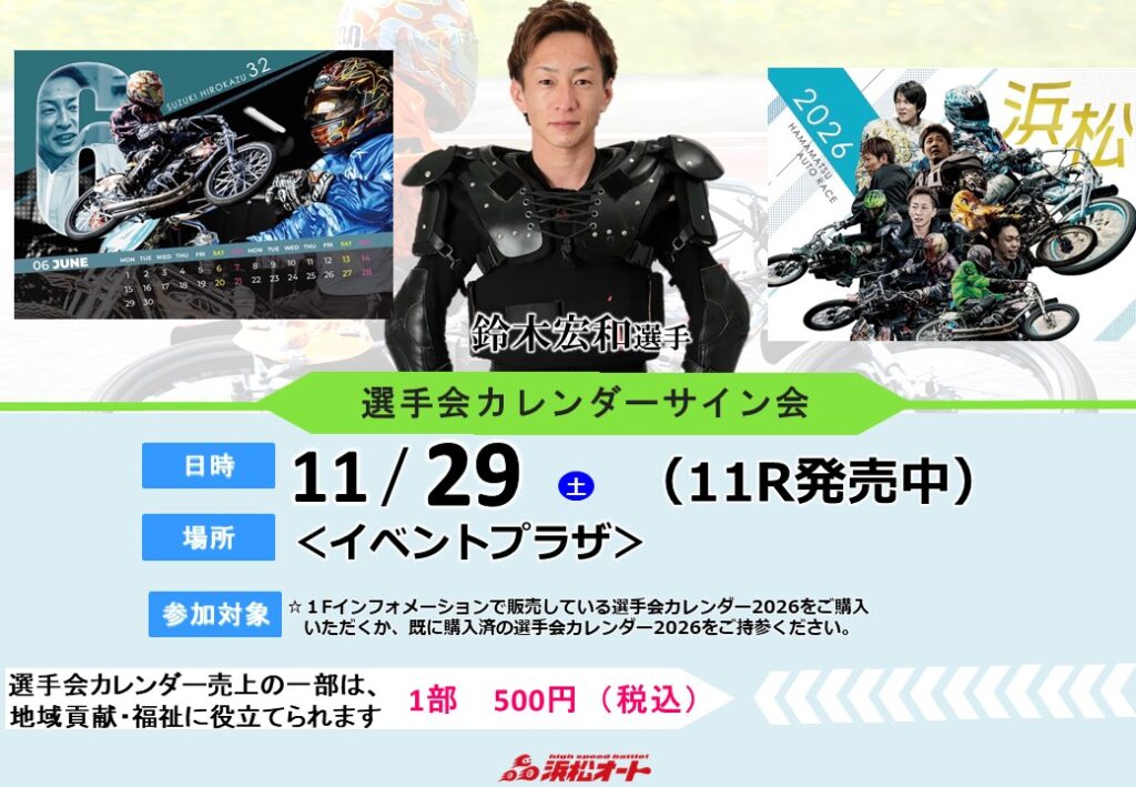 11/29「浜松オート選手会カレンダー2026」サイン会参加選手決定!