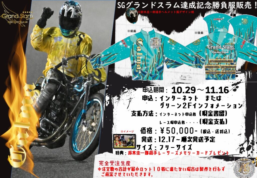 鈴木圭一郎選手グッズ販売のお知らせ(SGグランドスラム記念勝負服)