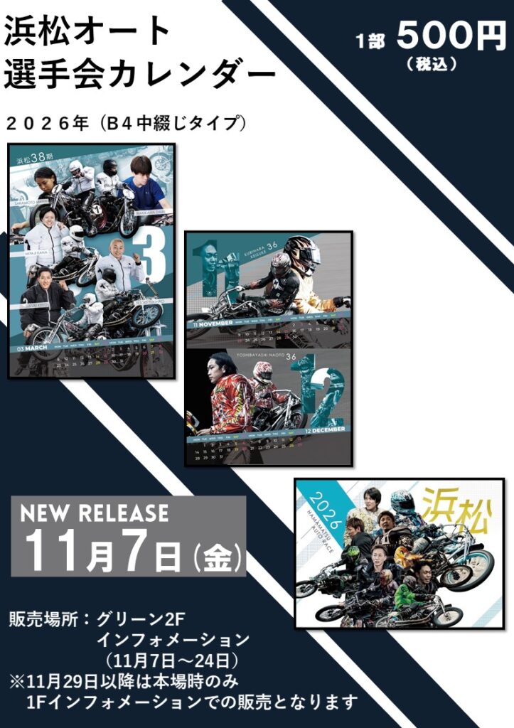 浜松オート選手会カレンダー2026年の販売のお知らせ