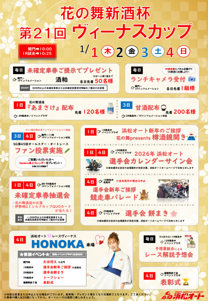【本場開催のご案内】2026年1月1日~1月4日 花の舞新酒杯 第21回ヴィーナスカップ イベント