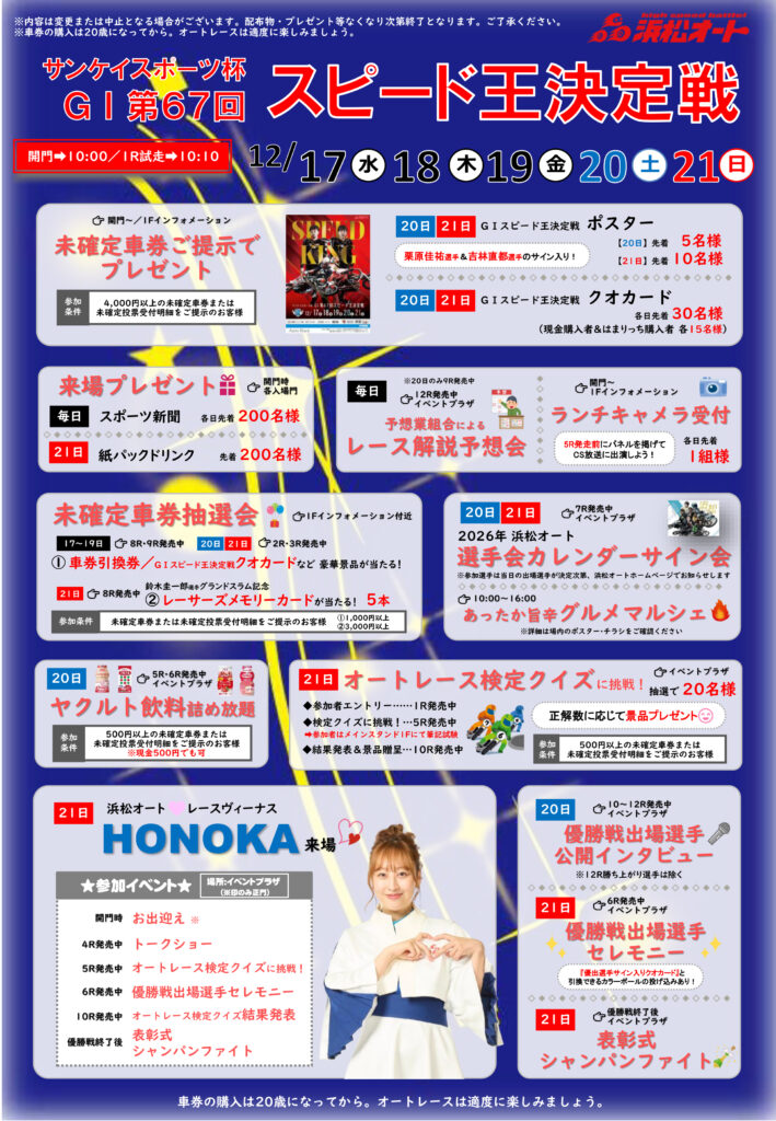 12/17~21 本場開催「サンケイスポーツ杯 GⅠ第67回スピード王決定戦」レース情報&イベントお知らせ