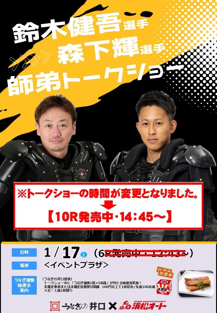 本場1月14日~1月17日「第4回うなぎの井口杯」レース情報&イベント(選手会カレンダーサイン会参加選手&健吾選手・森下輝選手トークショー時間変更)】のお知らせ!