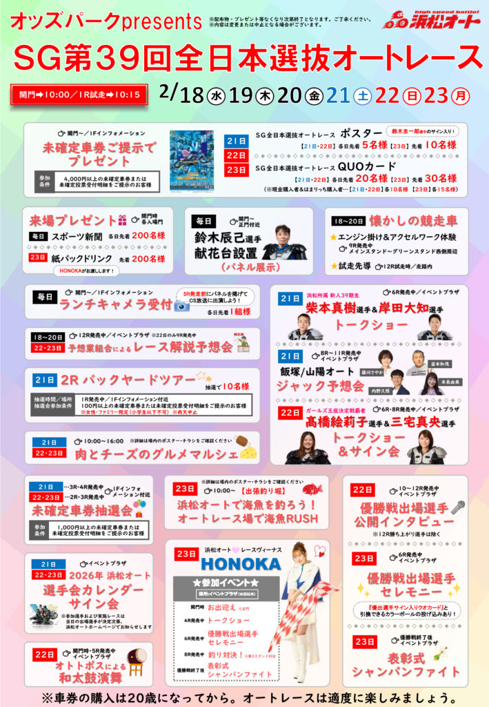 2月18日~2月23日「オッズパークpresents SG第39回全日本選抜オートレース」イベント情報第3弾公開!